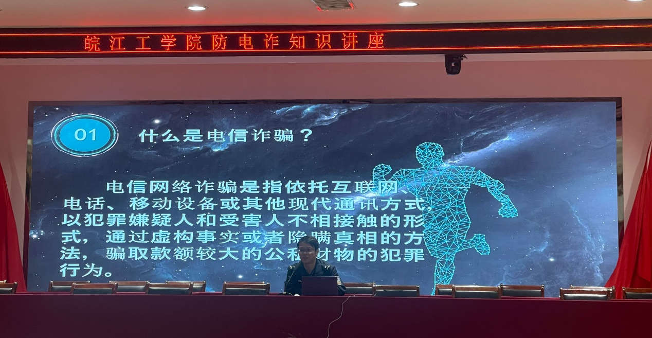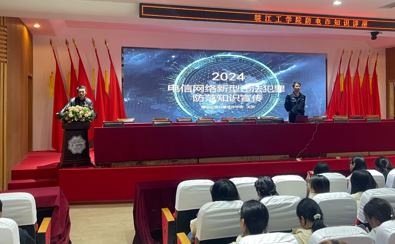 2024年3月13日下午14:30,皖江工学院霍里山校区图书馆报告厅内座无虚席,一场以防诈骗为主题的防范电信诈骗知识讲座在这里举行。此次讲座旨在提升广大学生的网络安全意识和防范意识,避免电信诈骗案件的发生,保障学生的财产安全。讲座由我校院务部王鲲副部长主持,并邀请了雨山区公安分局反诈中心王欢警官担任主讲。