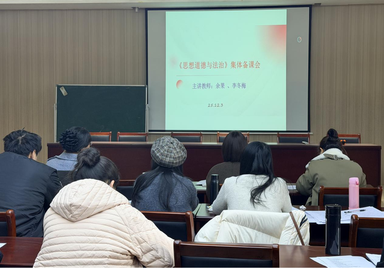 12月3日,德法课程组在多功能会议室召开集体备课会。会议由教研室主任赵萍主持,全体课程组教师参会。本次集体备课会由余果老师和李冬梅老师主讲,主要围绕德法课程中“成就时代新人”和“人生观”的教学内容进行深入研讨,旨在通过集体备课形式,共同打磨一堂有深度、有温度、有力度的思政课。