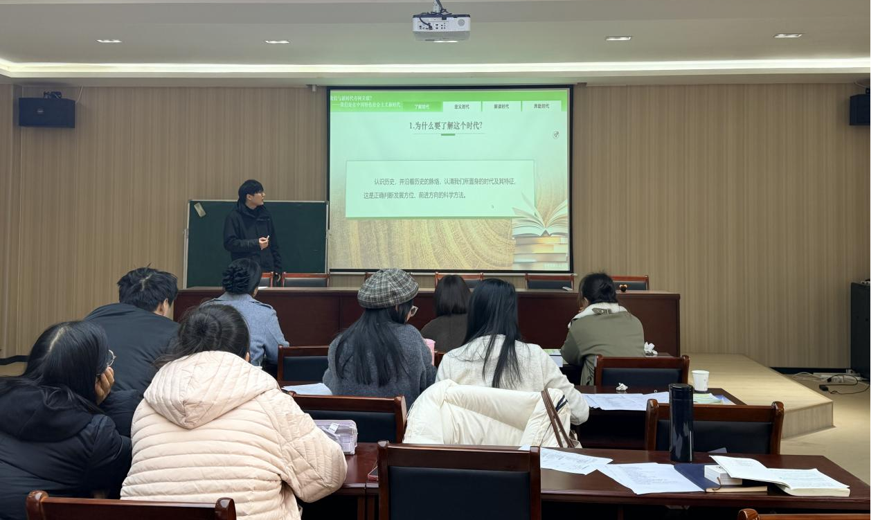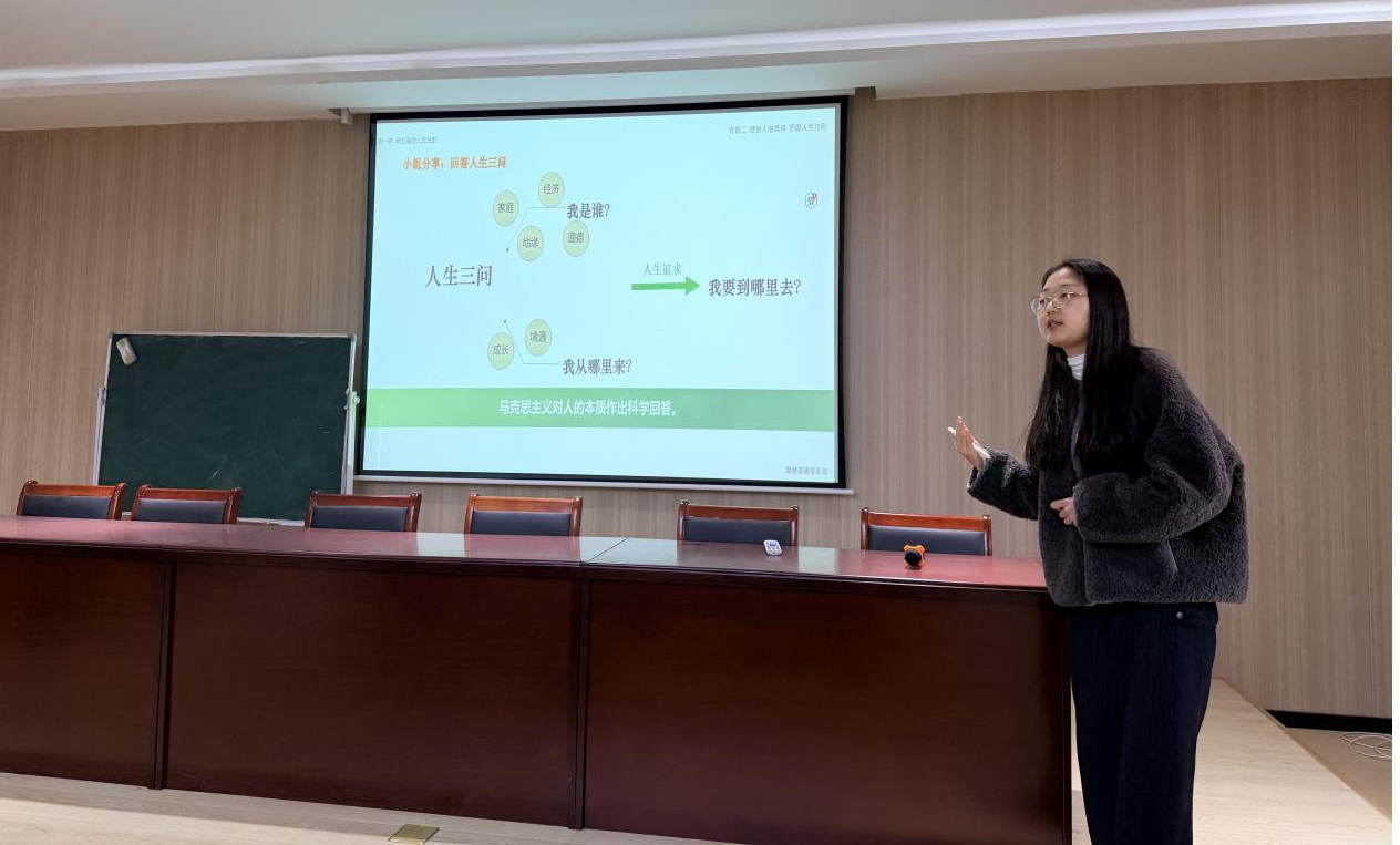 余果首先对绪论“担当复兴大任 成就时代新人”进行讲解。他从最新的社会热点出发,引出了我们所处的“新时代”内容,进而引导同学们要珍惜大学最关键的时期,勇于担当民族复兴大任的时代新人。接着,李冬梅紧扣教材理论知识点,结合学生日常实际进行课堂主题讨论,导入了第一章“人生观”的重要内容。她以“人的本质”为主线,通过轻松活泼的教学语言,给在场的老师们上了一堂生动的示范教学课。