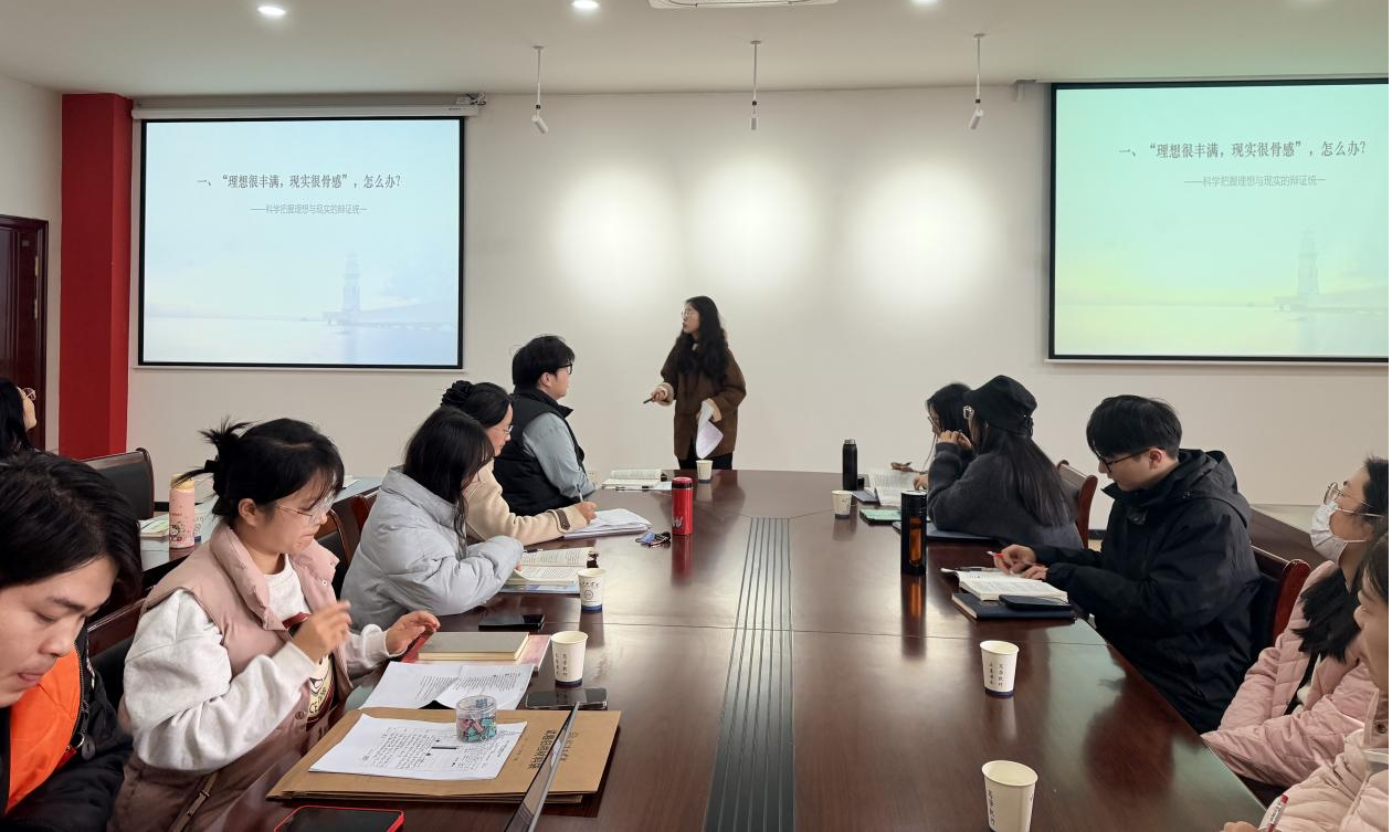 12月10日下午,德法课程组在学院活动室召开集体备课会。会议由教研室主任赵萍主持,全体课程组教师参加。本次集体备课会由张闫利老师和何仁杰老师主讲,教研室全体教师齐聚一堂,共同围绕德法课程中“理想信念”和“改革创新”等教学内容进行深入研讨。