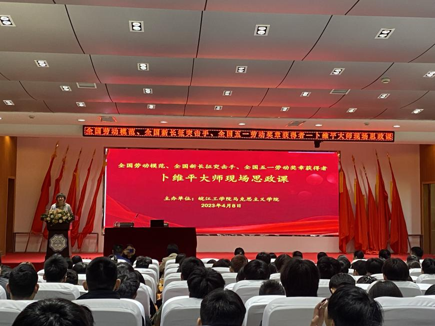 4月8日,全国劳动模范、全国新长征突击手、全国五一劳动奖章获得者、中国工匠精神奖获得者宝武资源安徽马钢矿业资源集团南山矿业公司职工卜维平大师,受我校马克思主义学院邀请,为我校21级全体同学上现场思政课。马克思主义学院常务副院长刘双,院长助理张春艳,各教研室主任及全体教师,我校21年级4000多名学生分别通过超星直播、工匠馆现场学习、报告厅听讲座等三种不同形式进行学习。
