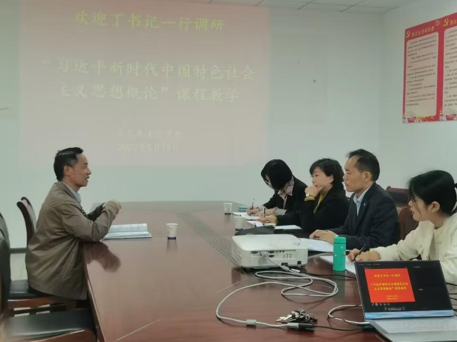 丁家云书记指出,思想政治理论课是落实立德树人根本任务的关键课程,我们共有六门思政课,都是以《习近平新时代中国特色社会主义思想概论》这门课为基础、为依据、为指导,课程旨在帮助大学生深入学习领会习近平新时代中国特色社会主义思想的核心要义、精神实质、丰富内涵、实践要求,而此次调研是了解课程情况,做好顶层设计,推动工作落实落地。