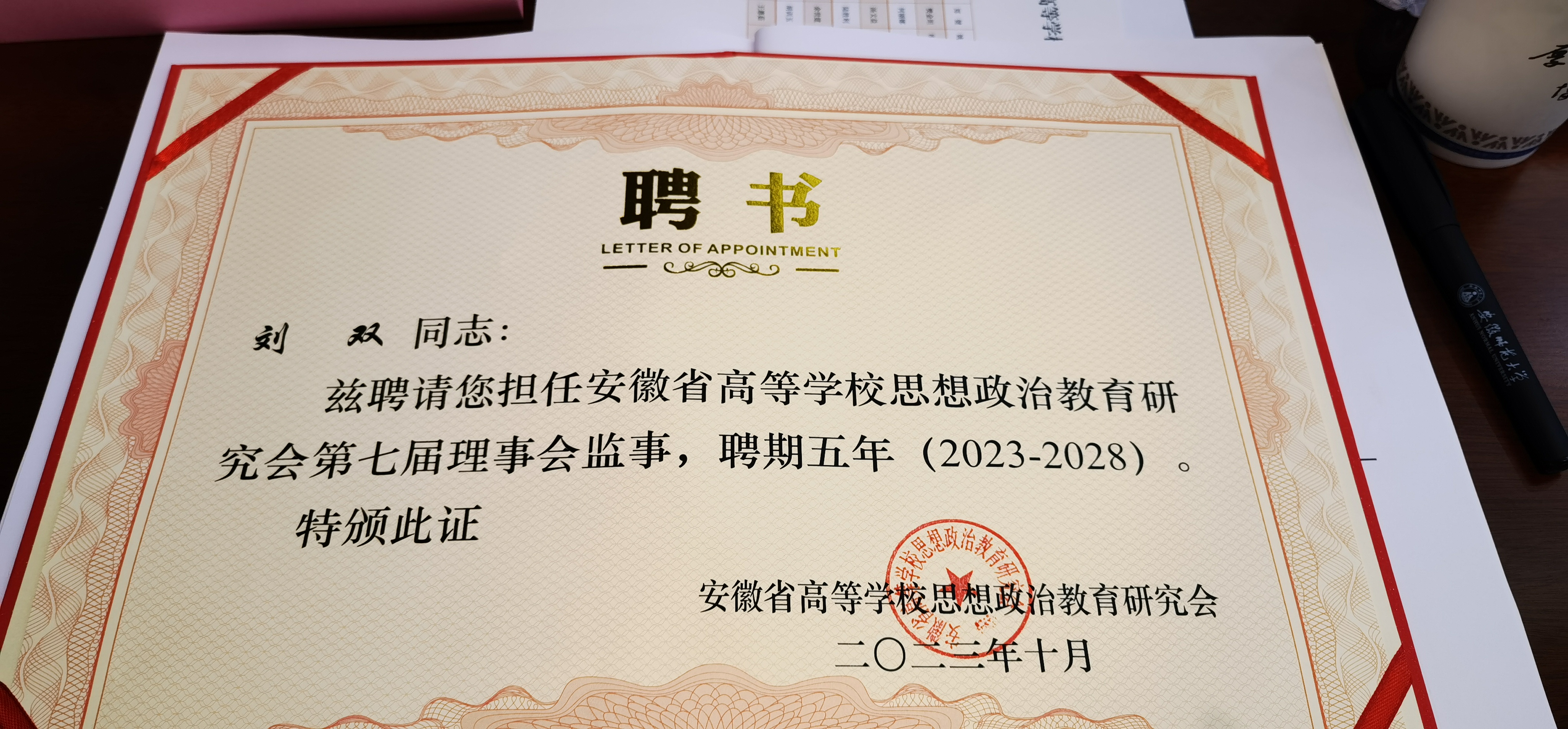 10月27日,安徽省高等学校思想政治教育研究会第七届代表大会在安徽师范大学胜利召开,经过选举,我院总支书记、常务副院长刘双被选为第七届安徽省思政研究会监事,我校也当选为监事单位,任期5年。