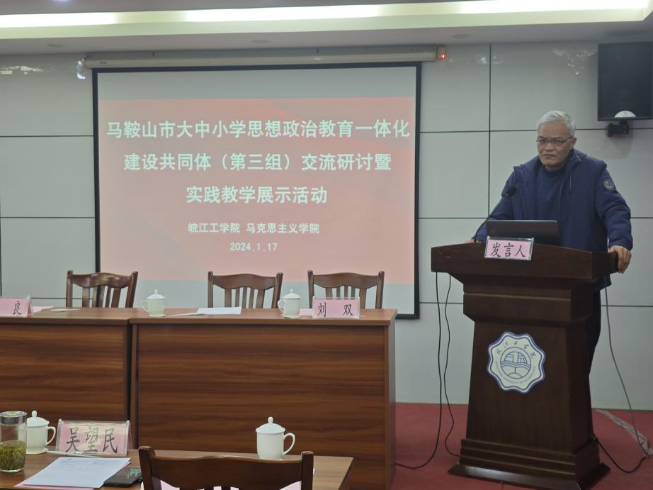 会上,四所学校代表14所大中小小学进行经验交流。皖江工学院作为牵头高校,以“大中小学思政实践课一体化探讨”为题,从大中小学思政教育一体化建设的问题导向;思政课回归社会的本质要求;以“大思政课”为着力点推进思政实践课一化建设探索等三方面进行交流发言。