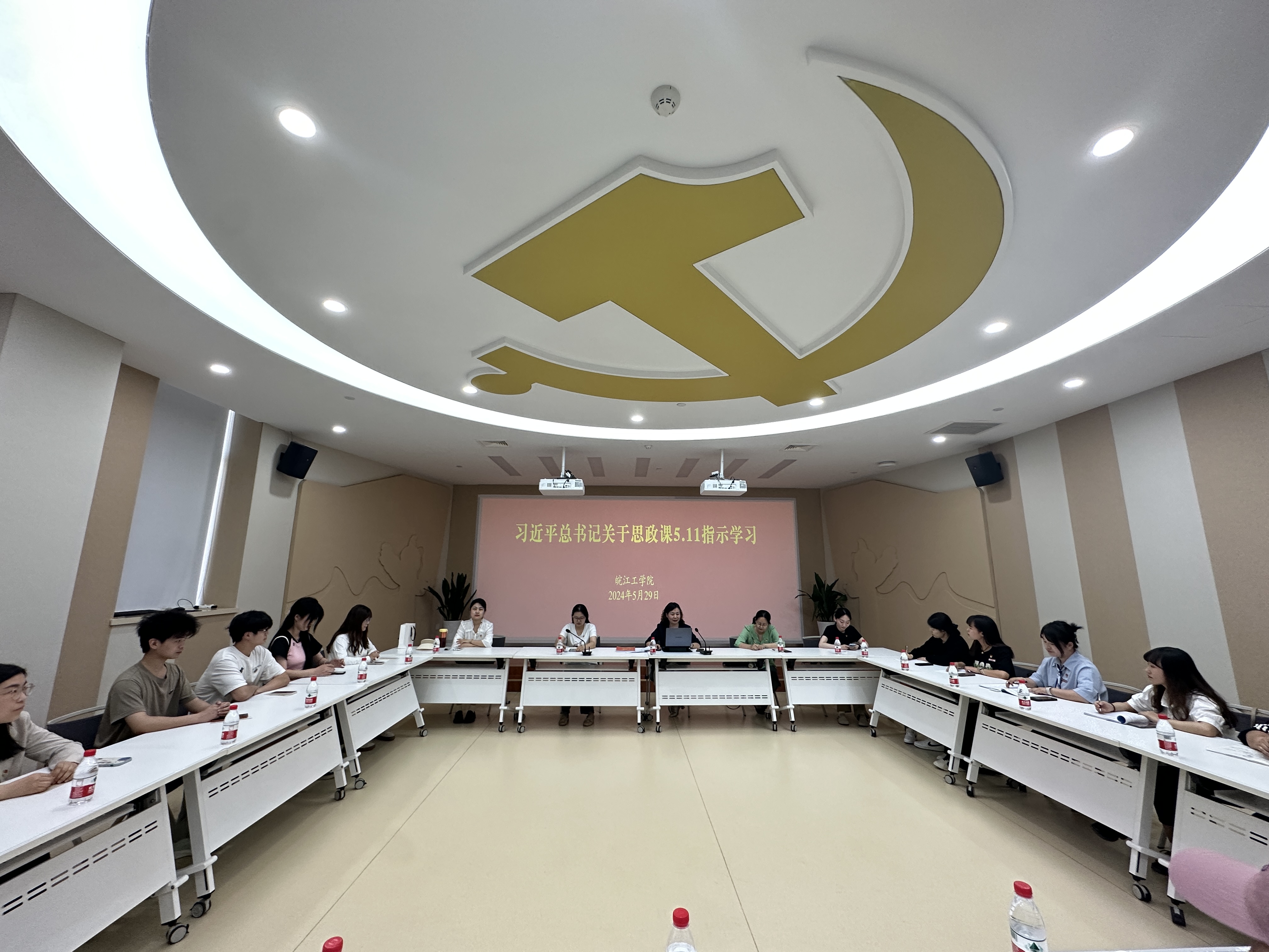 近日,马克思主义学院在马鞍山市党群服务中心召开党员大会,学习习近平总书记在5月11日对思政课建设作出的重要指示。马克思主义学院党总支书记、常务副院长刘双,马原与德法教研室主任赵萍,概论与形策教研室主任杨锴,党政办、教学办及全体教师参加。会议由刘双主持。