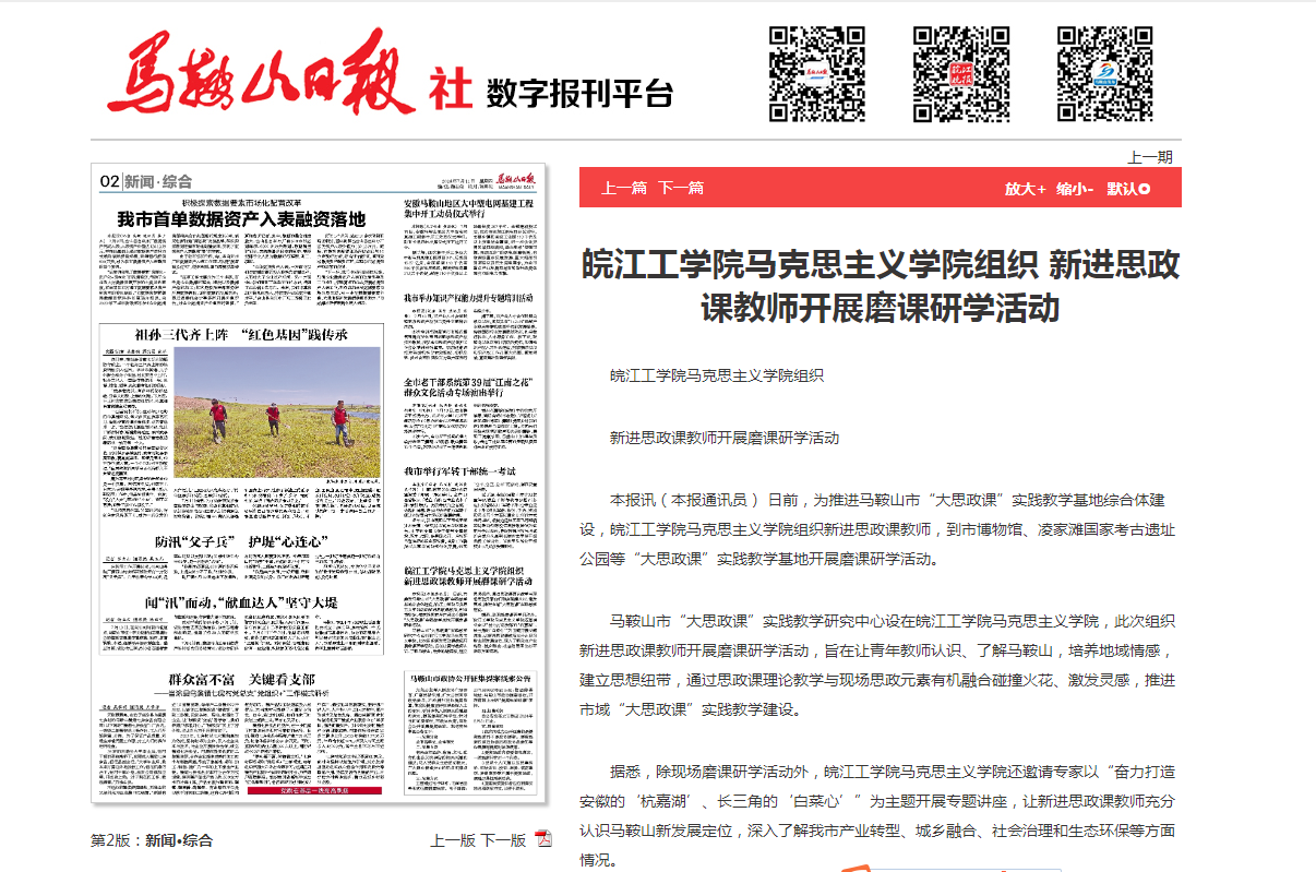 马鞍山日报报道我校马克思主义学院组织 新进思政课教师开展磨课研学活动