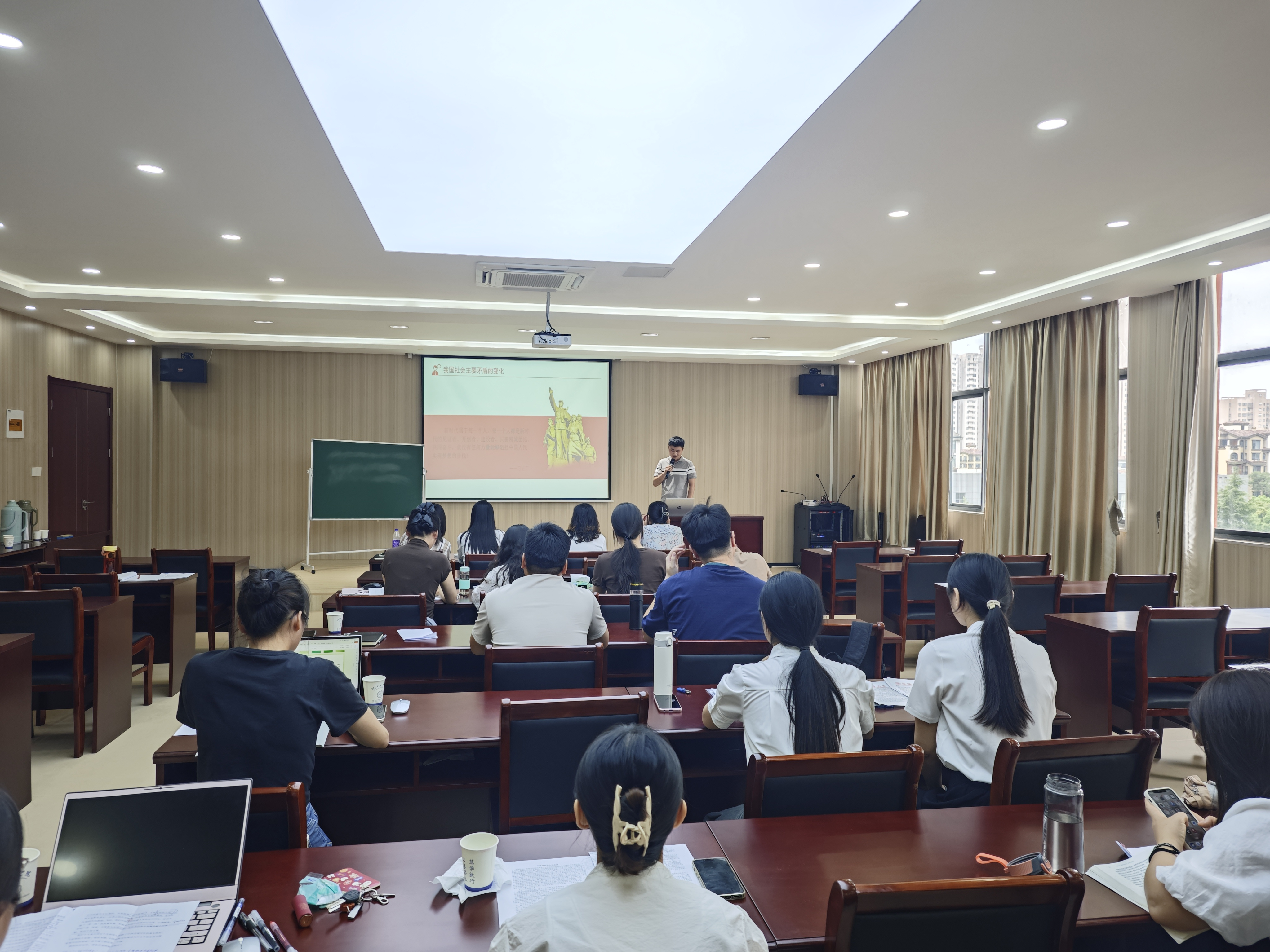为有效提升新教师的教学能力,帮助新教师更好更快地进入角色。8月27日,马克思主义学院组织新教师在四楼多功能会议室开展试讲活动。马克思主义学院总支书记、常务副院长刘双,德法与马原教研室主任赵萍、概论与形策教研室主任杨锴、新思想教研室负责人周菊红及部分教师参加了此次活动。