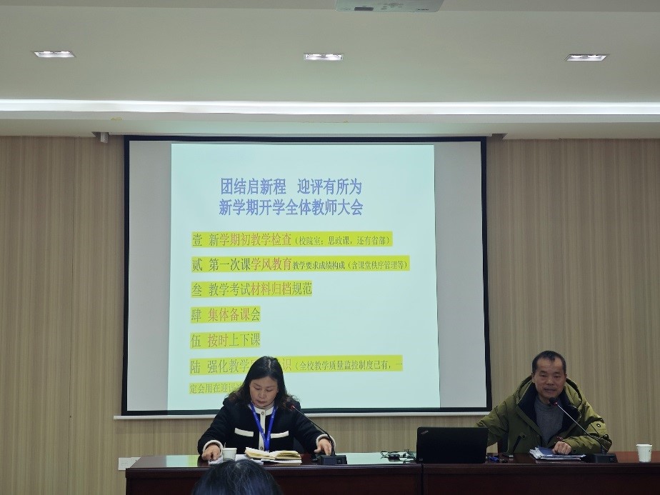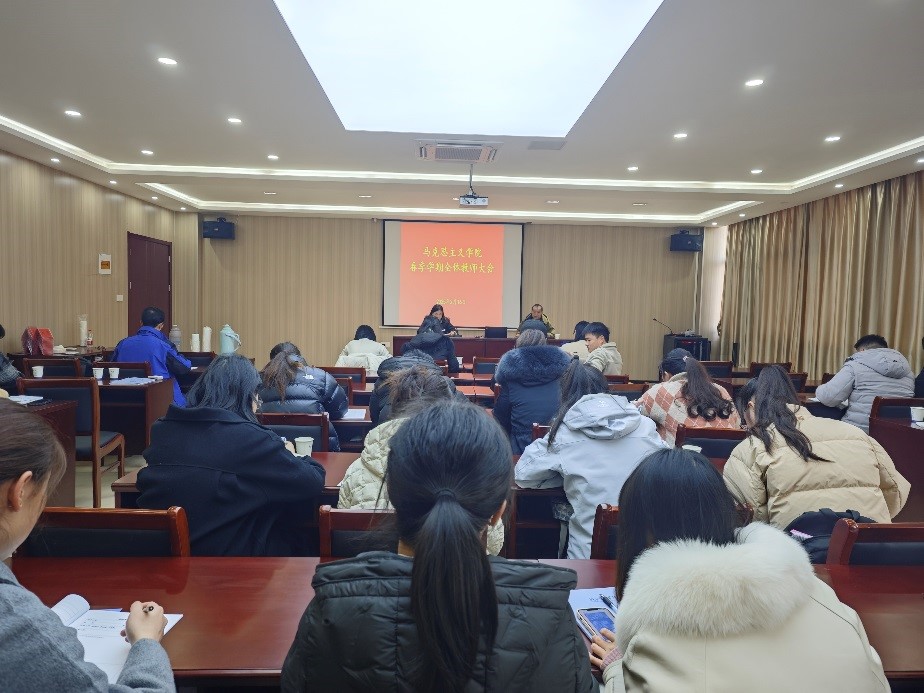 团结启新程,迎评有所为。2月16日,马克思主义学院在党员活动室召开25年春季学期全体教师工作会议,马克思主义学院常务副院长、党总支书记刘双、教学副院长胡耀东、各教研室主任、两办负责人及全体教师参加,会议由胡耀东主持。