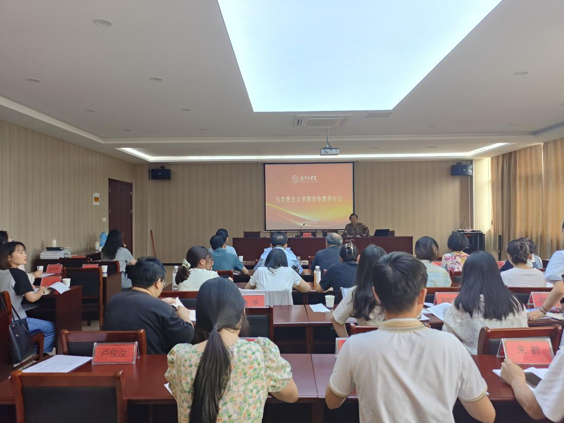 6月4日下午,马克思主义学院在多功能会议室召开全体教师会议暨迎评整推进会,马克思主义学院党总支书记、常务副院长刘双,马克思主义学院副院长胡耀东,各教研室主任和全体教师参加。
