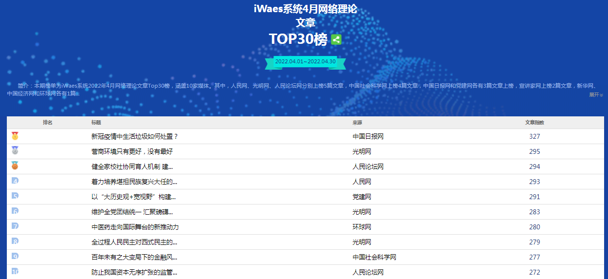 我校教师理论文章入选《光明日报》发布的全国网络理论文章TOP30排行榜第三名