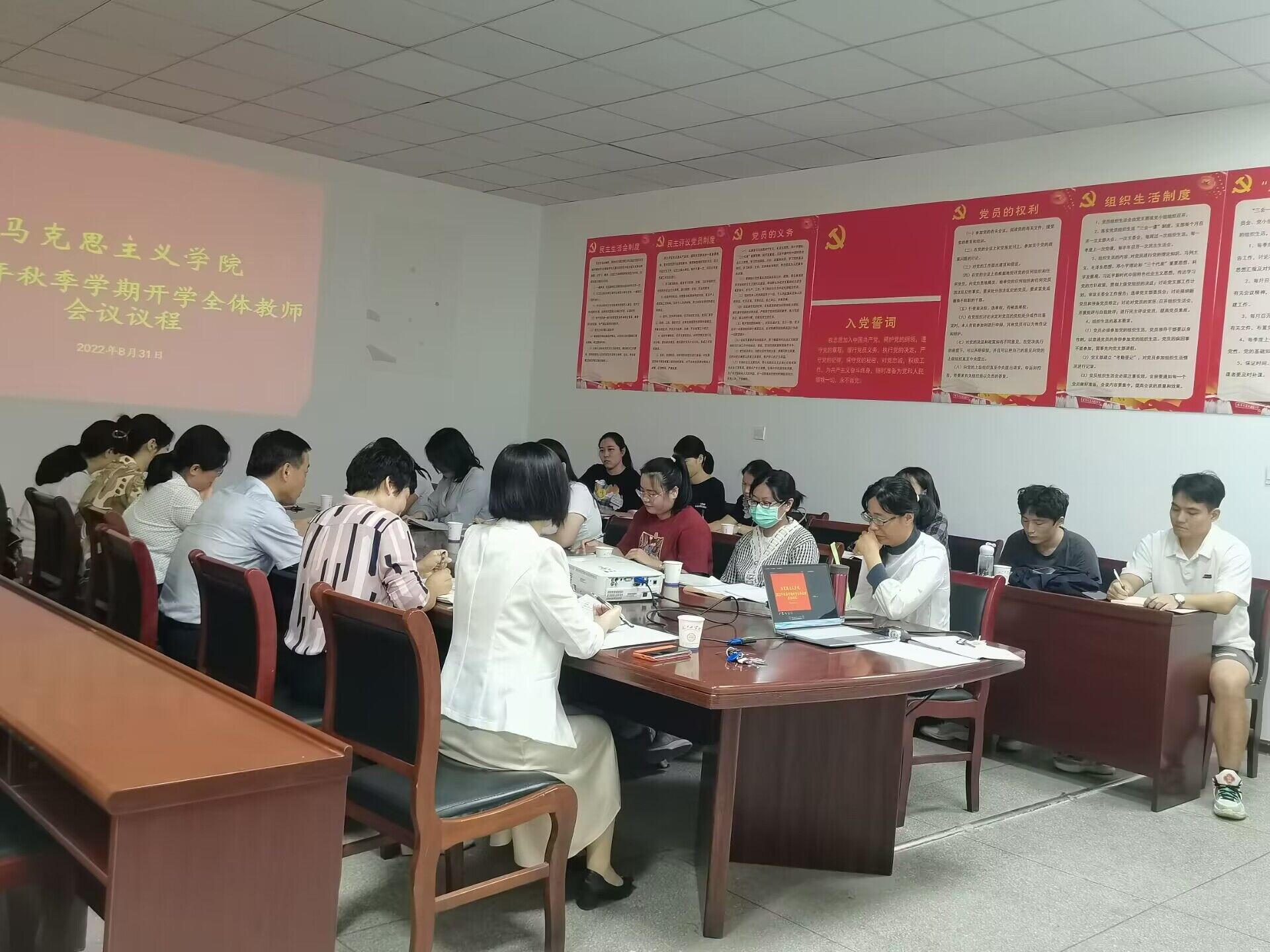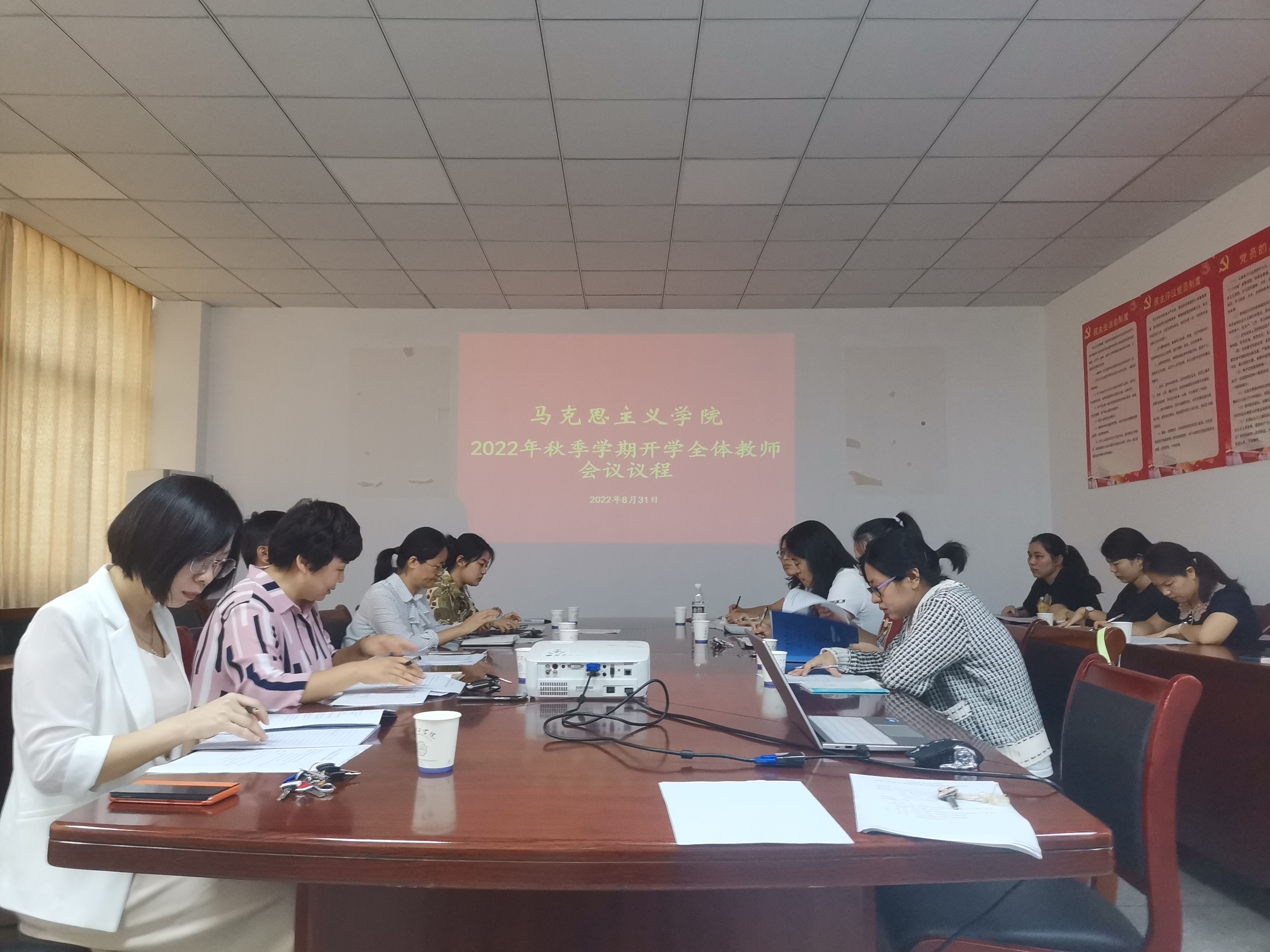 8月25日下午,马克思主义学院召开2022—2023秋季学期全体教师大会,部署新学期重点工作。董事长助理、宣传部长、马克思主义学院院长孙良,马克思主义学院常务副院长刘双,德法教研室主任赵萍,纲要教研室主任张春艳,综合办公室负责人王琪及马院全体教师全部出席,会议由刘双主持。