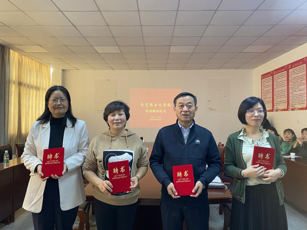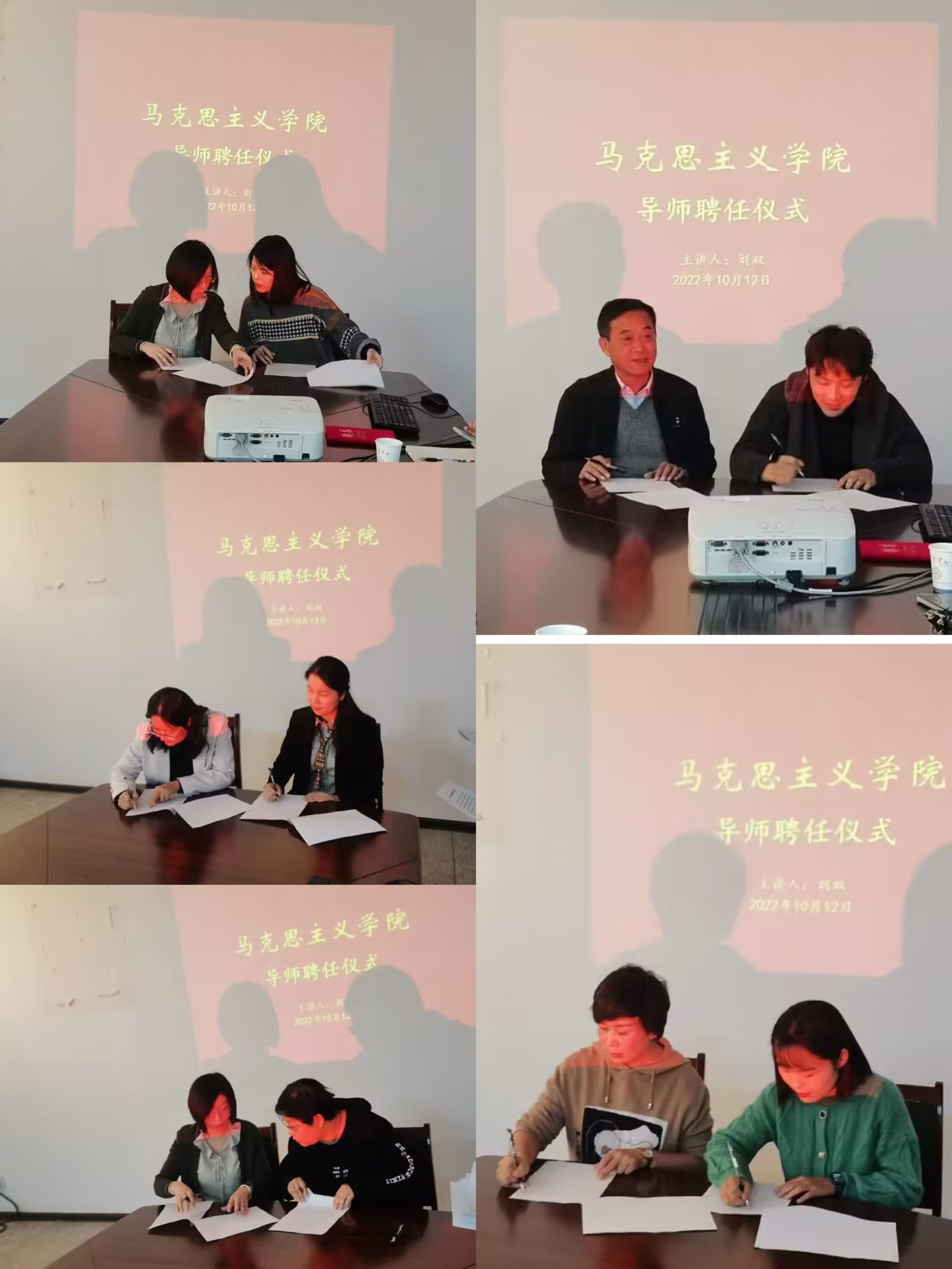 会上,刘双表示,马院导师聘任依据学校的文件,结合马院师资情况,拟确定青年教师导师资格,同时按照双向选择的规范化程序确定导师所带青年教师人员,最后经过马院教学委员会讨论通过后,上报学校教学委员会审批通过后最终确定。她宣读了《关于聘任张春艳等为马克思主义学院导师的决定》皖工马教〔2022〕01号文件。随后,孙良依次为受聘导师颁发了导师聘书并签订协议书,发放培养书册。