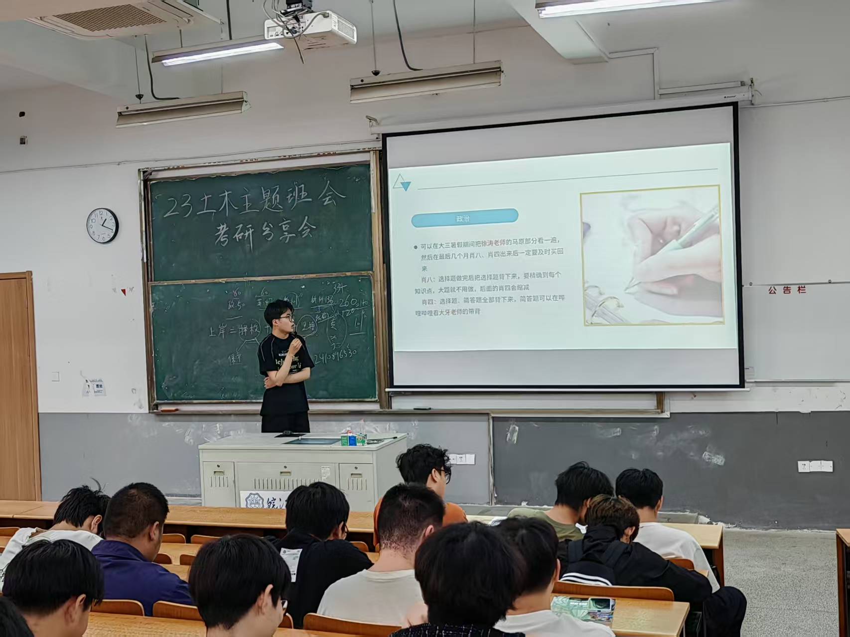 为帮助大二学生提高学习效率,明确学习目标、做好学业规划,4月24日,土木工程学院2023级土木工程专业在B102教室召开了“考研和学习经验分享”主题班会,邀请了21级土木工程专业两位优秀的学生代表方永喆和甘家林分享考研和学习经验。班会由1-2班班主任徐中秋主持,3-4班班主任袁雪莲、“闻天班”班主任练兰英和23级土木工程专业全体学生参加。