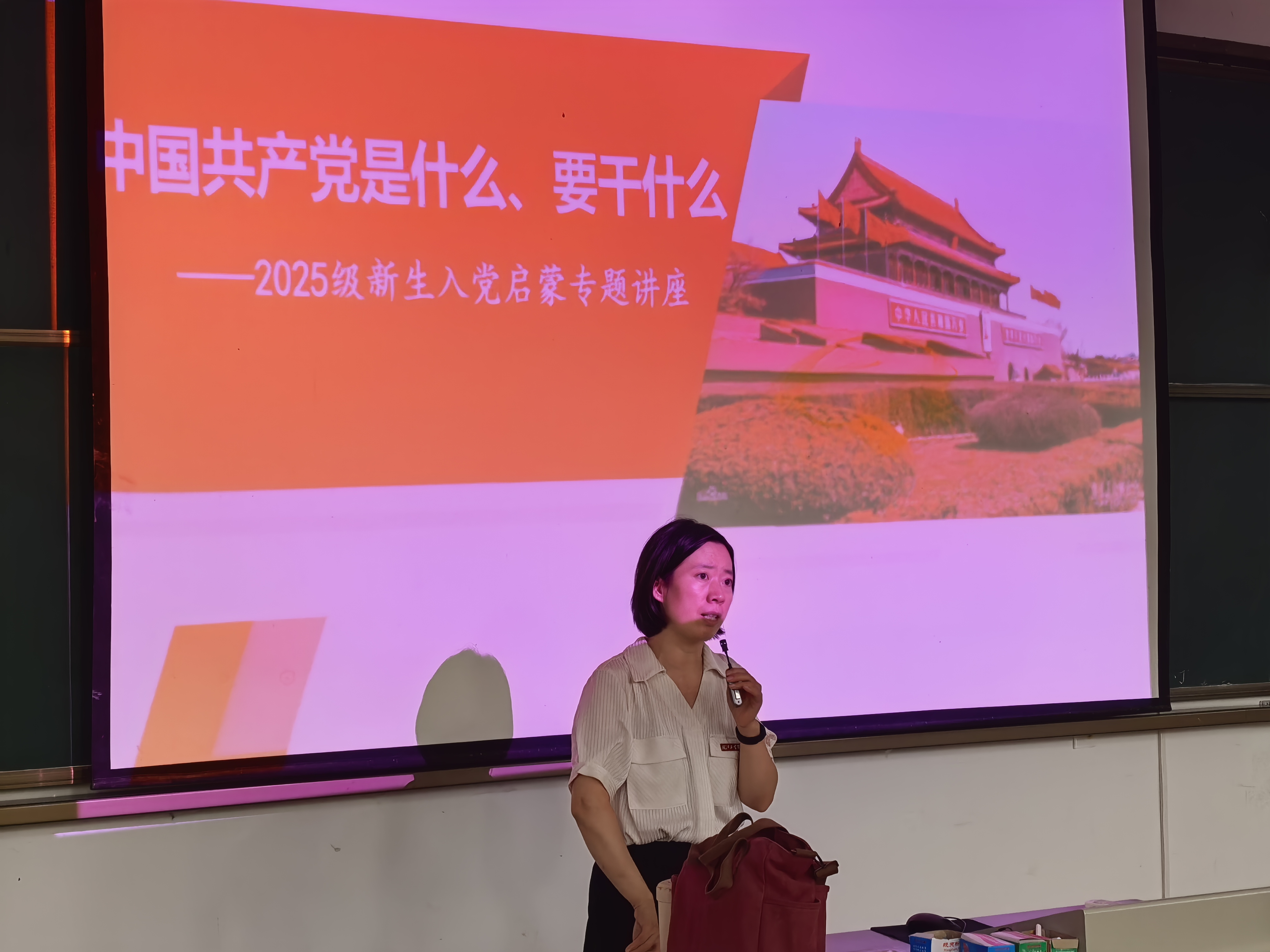 王瑜以2025年9月3日纪念中国人民抗日战争暨世界反法西斯战争胜利80周年阅兵仪式为切入点,引导新生深刻领会党的初心使命,回顾了中国共产党波澜壮阔的百年奋斗历程。