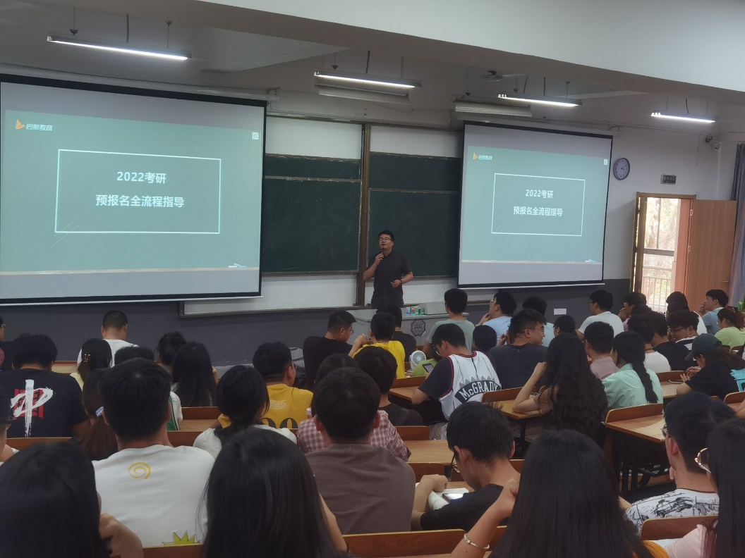 会上,主讲老师就考研报考流程、注意事项、最后90天备考规划三主题作了详细介绍。提醒同学们:一是要了解报考流程、要求、时间以及费用等相关信息。每年都有同学因为不了解考研报名流程、要求、时间以及费用等而报名失败。二是要了解考研报名注意事项。例如定向还是非定向的选择、专业的细分方向、考点和招生单位等。三是要做好备考规划。同学们要注意学科时间分配,保持平常心态,注意记忆方法。最后指出,同学们要以平常的心态,最饱满的精神状态来迎接这场考试。