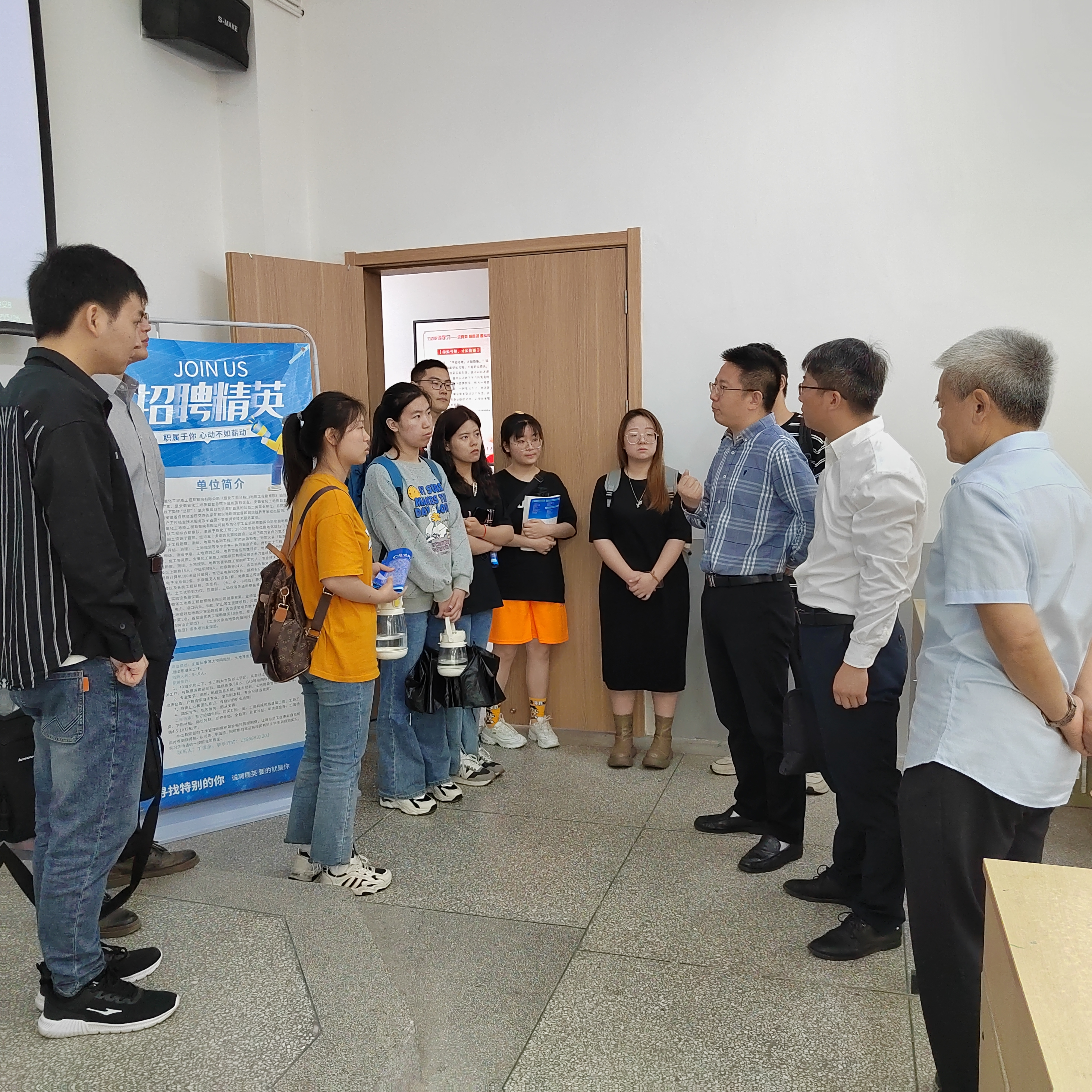 随后,言龙总经理一行在B105教室进行了专场招聘会的宣讲,50余名2022届土木、地质、测绘等专业毕业生参加了宣讲会,对同学们最关心的薪资待遇、发展前景等问题进行了详细解答。最后,与毕业生们进行了面对面交流,提供就职建议与指导。
