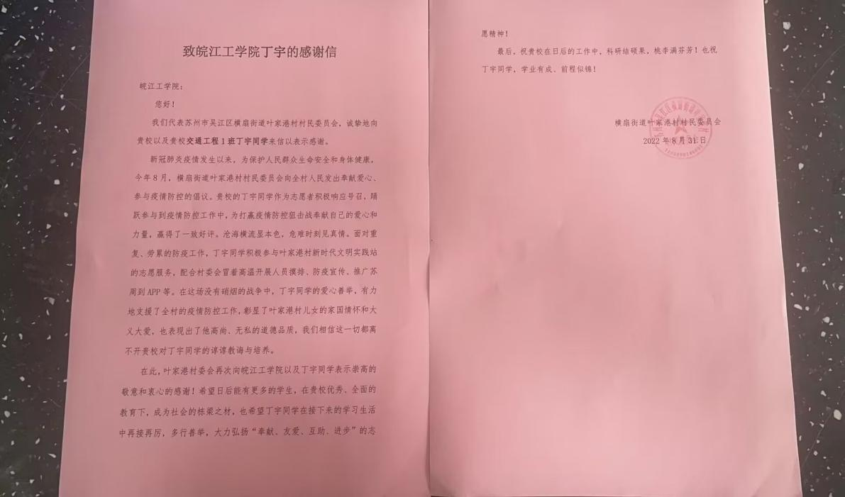 一封感谢信,丝丝恩与情——土木工程学院三位学子参与暑期志愿活动