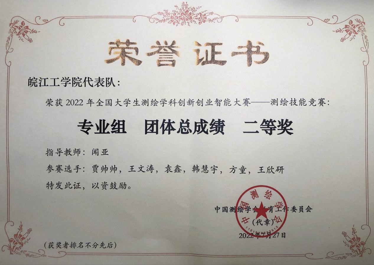 2022年全国大学生测绘学科创新创业智能大赛获奖证书已于近日发放,我校土木工程学院闻亚老师指导的学生在测绘技能竞赛(数字测图组、无人机组、程序设计组)均斩获佳绩,首次获国家级一等奖1项,国家级二等奖2项,并获专业组团体总成绩二等奖,实现了历史性突破!
