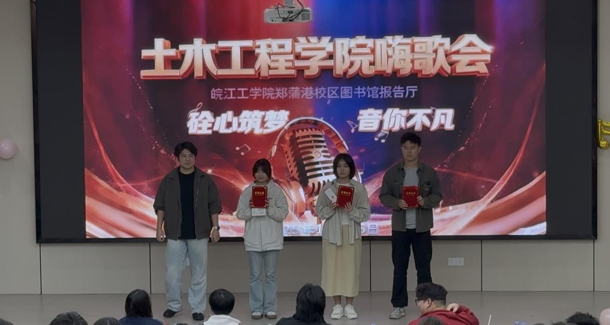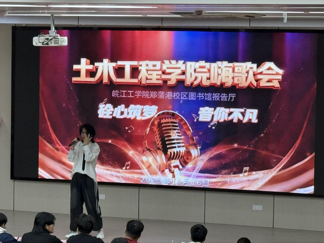 11月16日下午,皖江工学院郑蒲港校区图书馆报告厅内歌声嘹亮、掌声雷动,土木工程学院 “砼心筑梦 音你不凡” 嗨歌会圆满落幕。这场由学院分团委精心策划的音乐盛宴,既深度呼应了土木专业特色,更搭建起学子们展现自我、放飞梦想的青春舞台,现场处处洋溢着蓬勃的活力与炽热的激情。