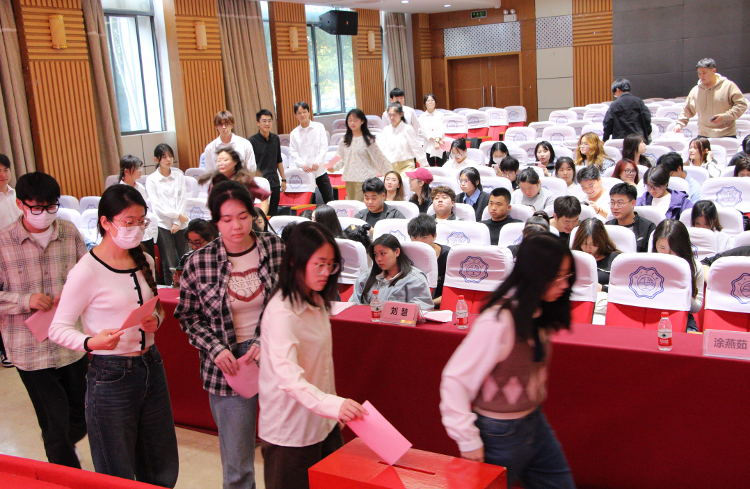 随后,会议听取并审议通过了皖江工学院艺术设计学院第一届学生会工作报告和共青团皖江工学院艺术设计学院第一届学生分团委工作报告。涂燕茹和刘慧分别宣读审议结果。候选人通过演讲竞选学生会与分团委成员,与会代表以无记名投票方式、差额选举产生新一届学生委员会与学生分团委。在激昂的团歌声中,艺术设计学院第二次学生代表大会暨团员代表大会圆满落下帷幕。