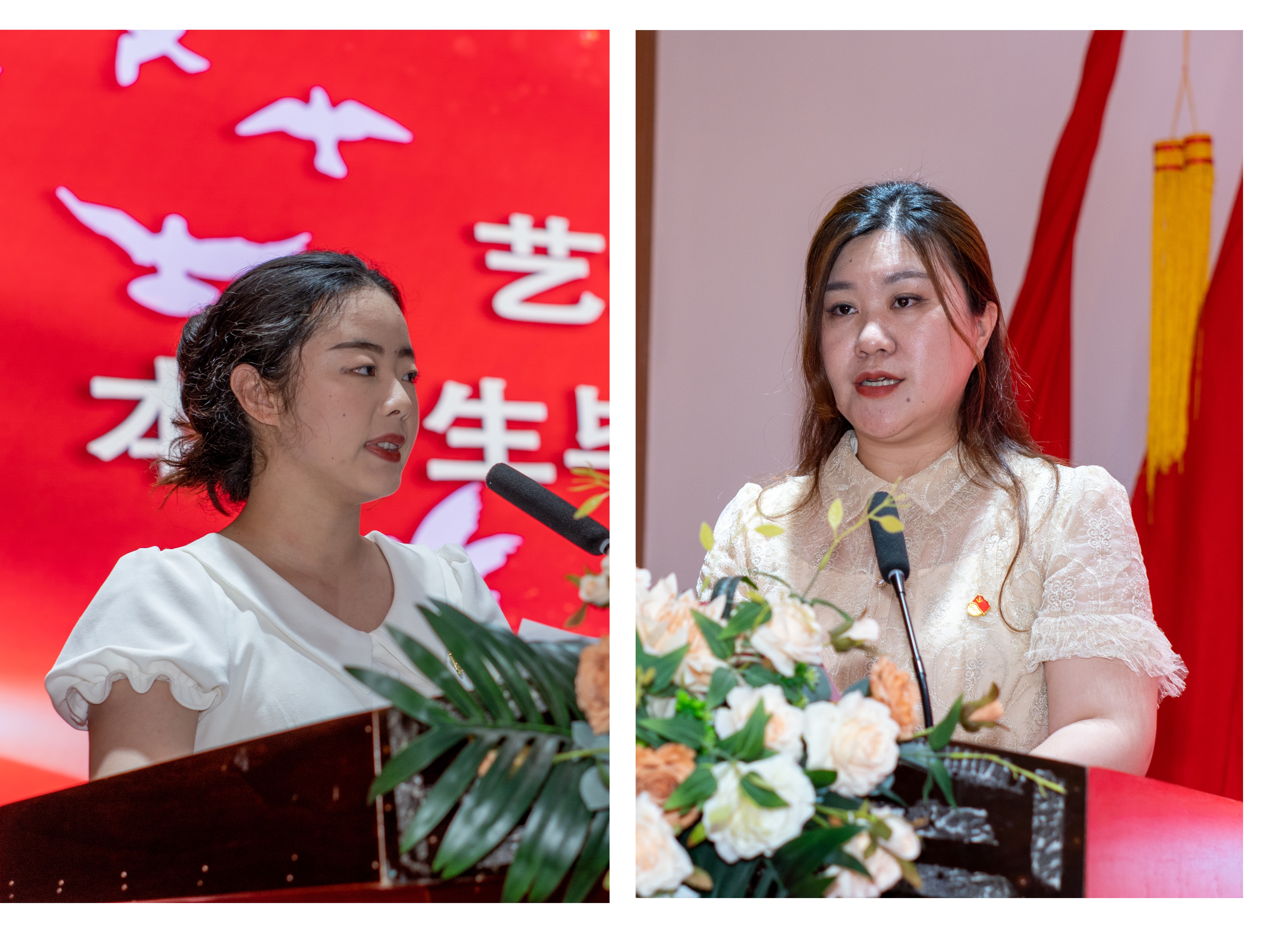 接着,毕业生代表储娟娟同学和教师代表曾媛老师分别发言。储娟娟同学用真挚的语言表达了对老师的感谢、对同学的不舍、对未来的期望和对学院的祝福。秉持与牢记党员身份,时刻保持党员先进性,坚定伟大理想信念,牢记职责使命,以更加饱满的精神、更加优异的成绩践行对党的庄严承诺。教师代表曾媛老师深情寄语2023届全体毕业生,希望大家能够牢记这份祝福与期望,不要感怀离别的悲伤,要用青春拥抱时代,将个人的小我融入时代的大我,永葆赤子之心,厚植家国情怀,砥砺使命担当。