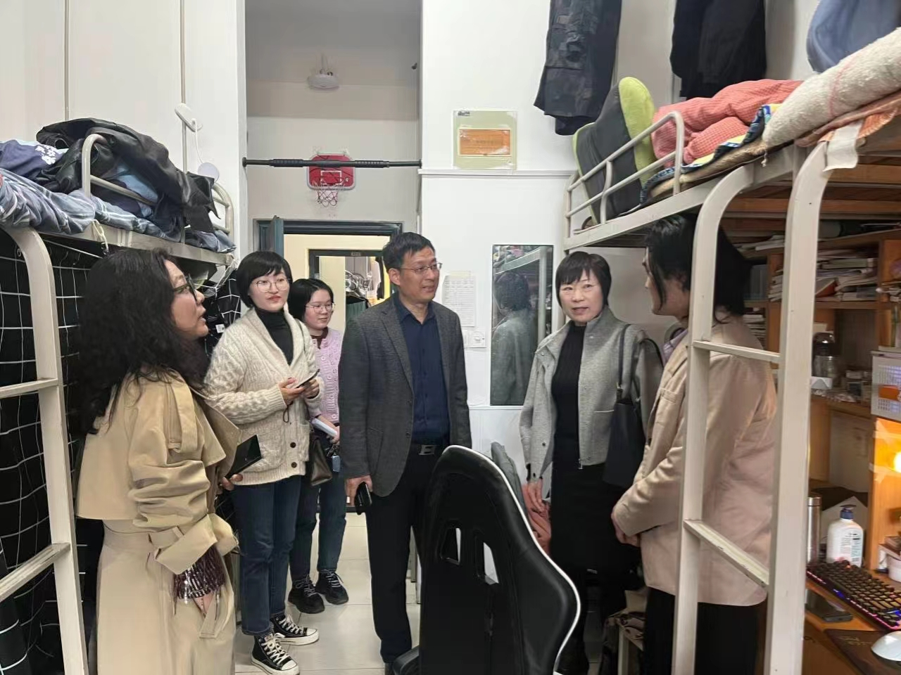 检查组深入教学楼、实验室、学生宿舍等地,认真听取相关管理员的工作汇报,详细检查安全卫生责任落实情况,重点了解实验室管理、实验室规划及学生宿舍安全卫生情况。对寝室卫生、寝室私拉电线、寝室抽烟等情况进行了重点检查。并跟学生进行交谈,了解学生学习生活上的问题,面对面的解决他们当下的困难。