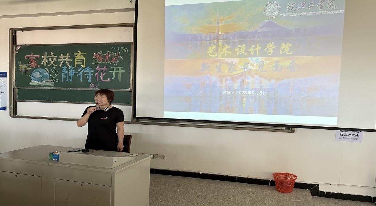为增进2023级新生家长对皖江工学院艺术设计学院的了解,加强家校沟通,凝聚教育力量,联合助力学生成长成才,9月8日下午,艺术设计学院于郑蒲港校区D303教室顺利举办了2023级新生家长见面会。艺术设计学院党总支书记张亚梅、院长伍旭坤、副院长金花、数媒教研室主任阎磊、产设教研室主任俞晓宇、22级辅导员王振超、23级新生辅导员左镜鸥出席见面会。会议由张亚梅主持。