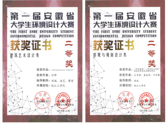 近日,由安徽省教育厅主办的“第一届安徽省大学生环境设计大赛”作品评选结果揭晓,我院环境设计专业学生分别荣获2项二等奖、6项三等奖。