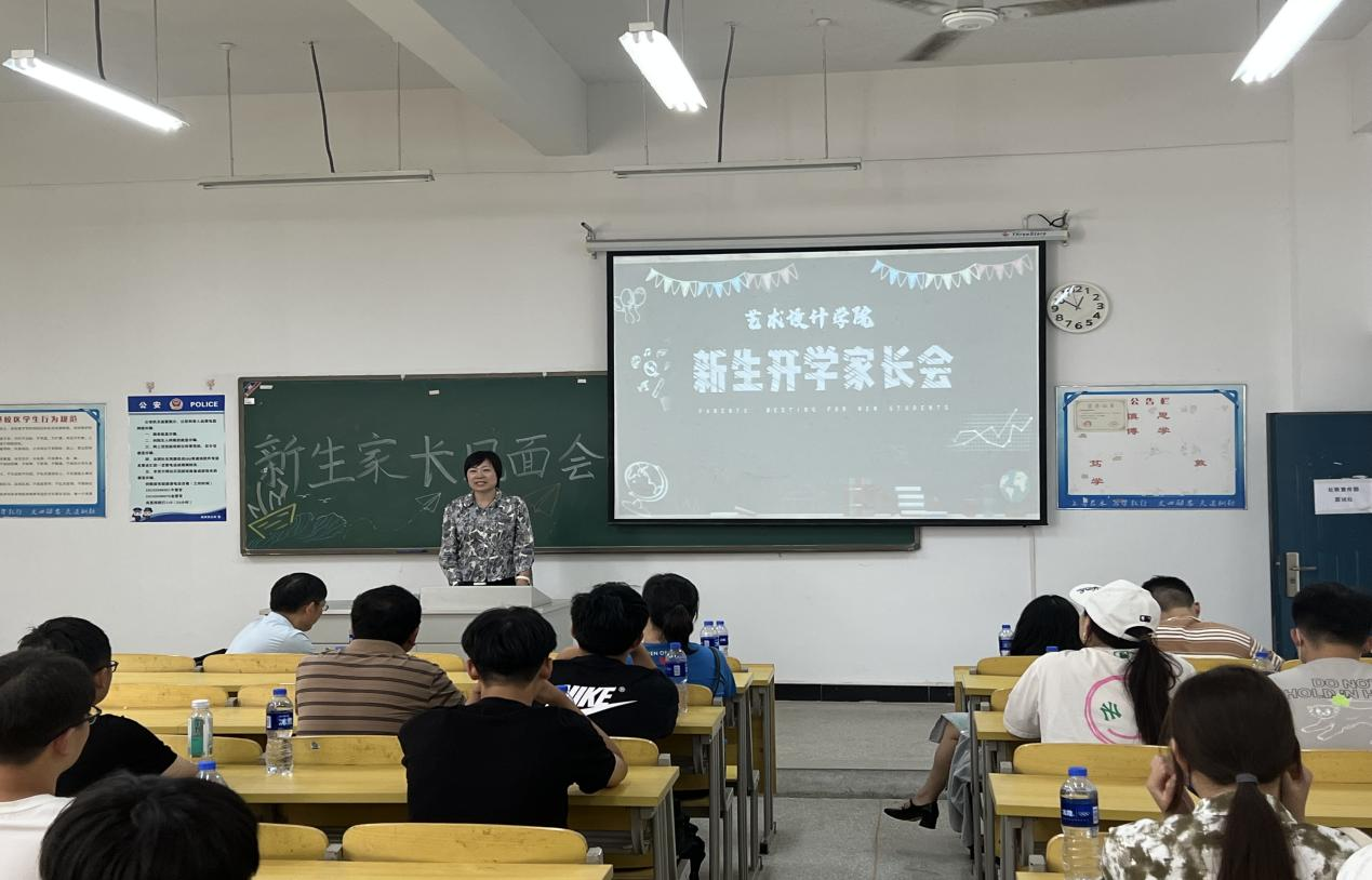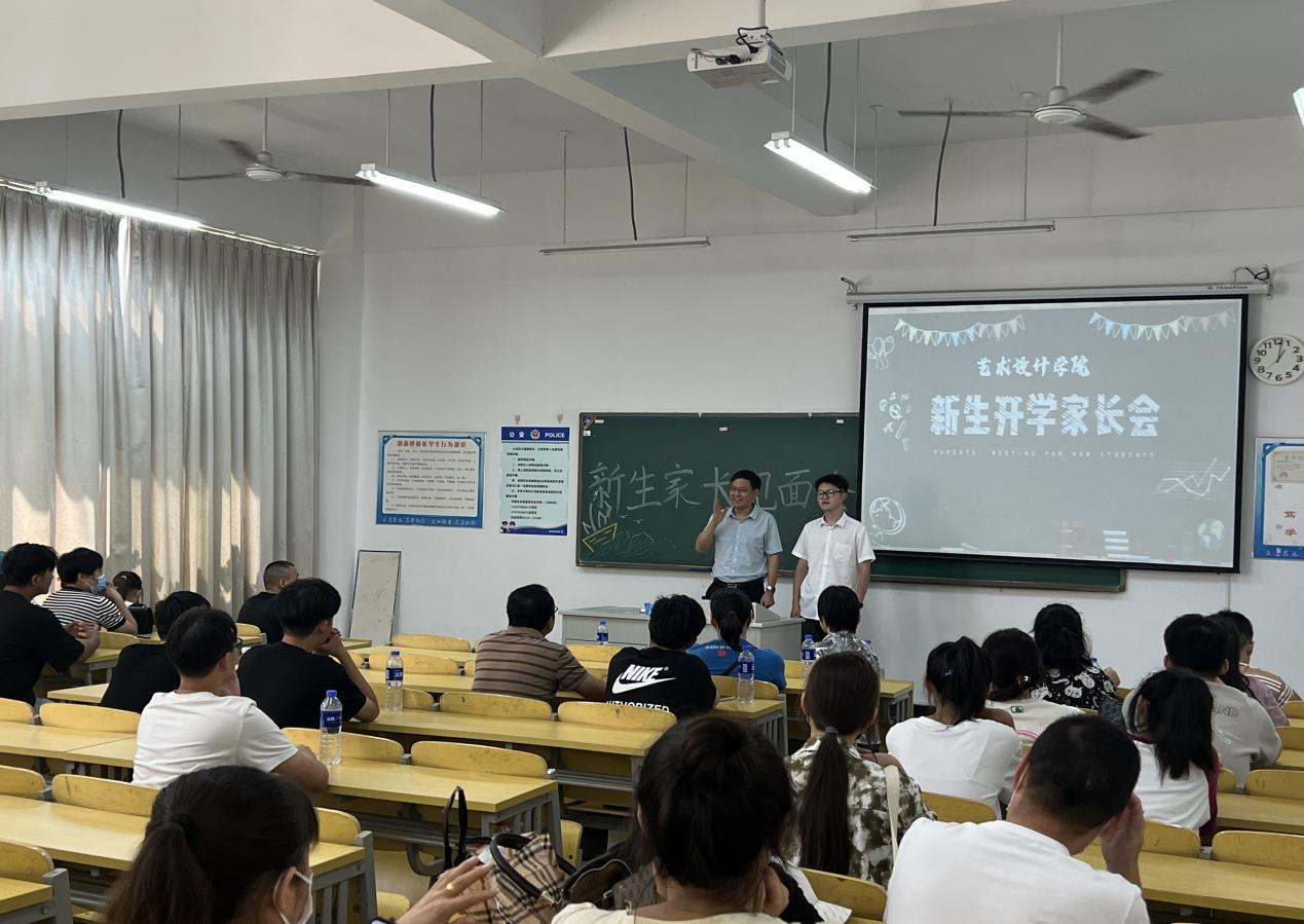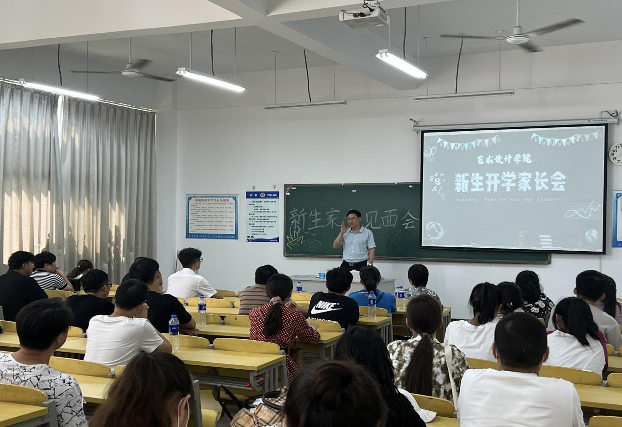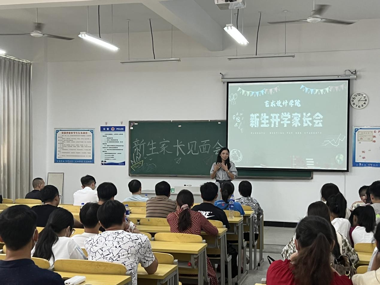 学院领导和老师们与新生亲切交谈,并勉励同学们尽快适应大学生活,融入新环境开启新征程,院长伍旭坤和书记张亚梅以及院长助理金花在郑蒲港校区C楼101教室进行了新生家长见面会及迎新会,体现了对新生入学的高度重视。院长伍旭坤主要阐述了艺设院的成绩的发展史,三个专业的前景介绍等方面,这也体现了我院领导与老师的人文关怀,搭建了一座促进师生及家长沟通的桥梁,让新生感受到了来自学院的温暖。