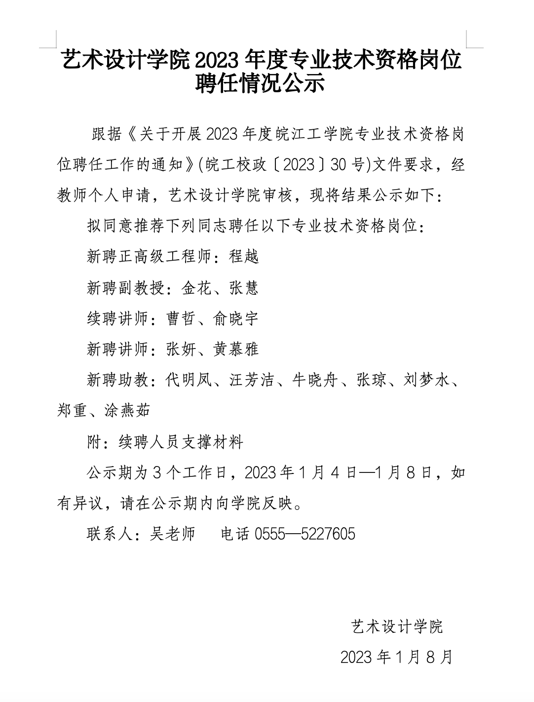 艺术设计学院2023年度专业技术资格岗位聘任情况公示