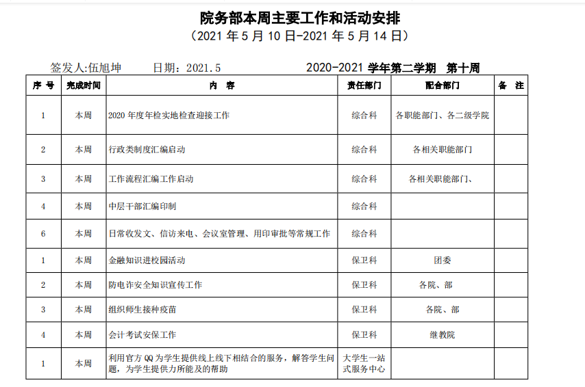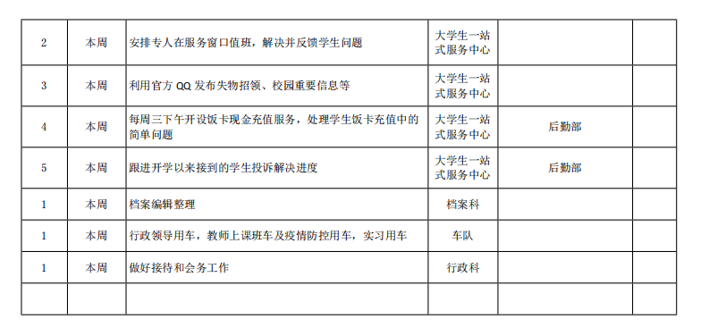 皖江工学院院务部第十周工作安排