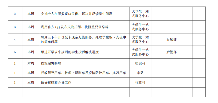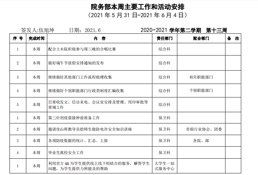 皖江工学院院务部第十三周工作安排