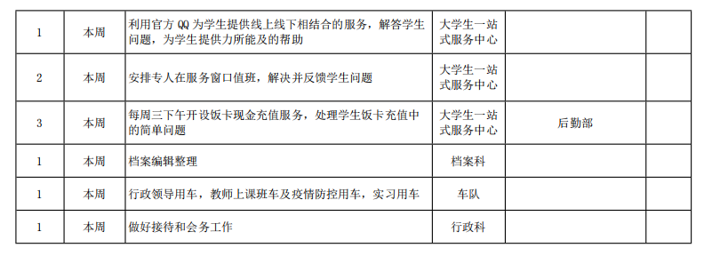 皖江工学院院务部第十六周工作安排