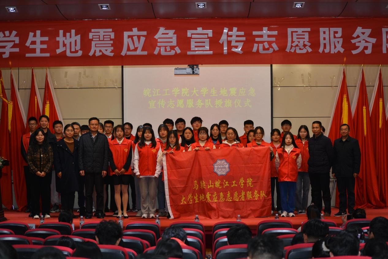 11月25日,马鞍山市地震局与皖江工学院机械工程学院联合展开地震应急志愿者服务队授旗仪式在霍里山校区图书馆报告厅顺利开展。出席本次授旗仪式的嘉宾有安徽省地震局地震台副台长张学印,安徽省地震局地理信息中心GIS应用室主任陈靓,马鞍山市地震局党组副书记、副局长何先文 ,皖江工学院机械工程学院党总支副书记颜婷婷,皖江工学院院务部部长助理王鲲,机械学院学工办副主任杜岚等,授旗仪式由保卫科副科长薛文主持。
