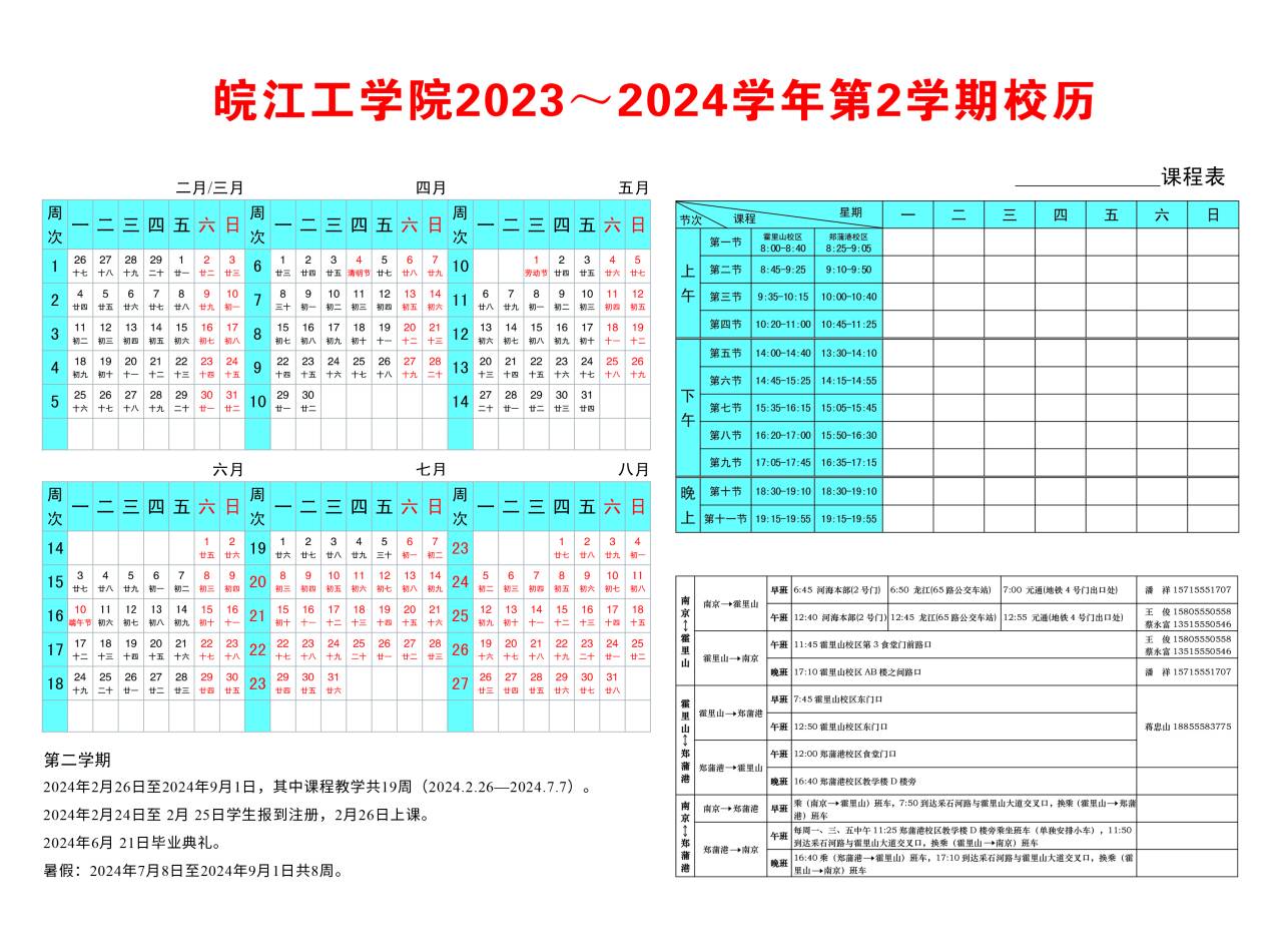 皖江工学院2023-2024学年第2学期校历