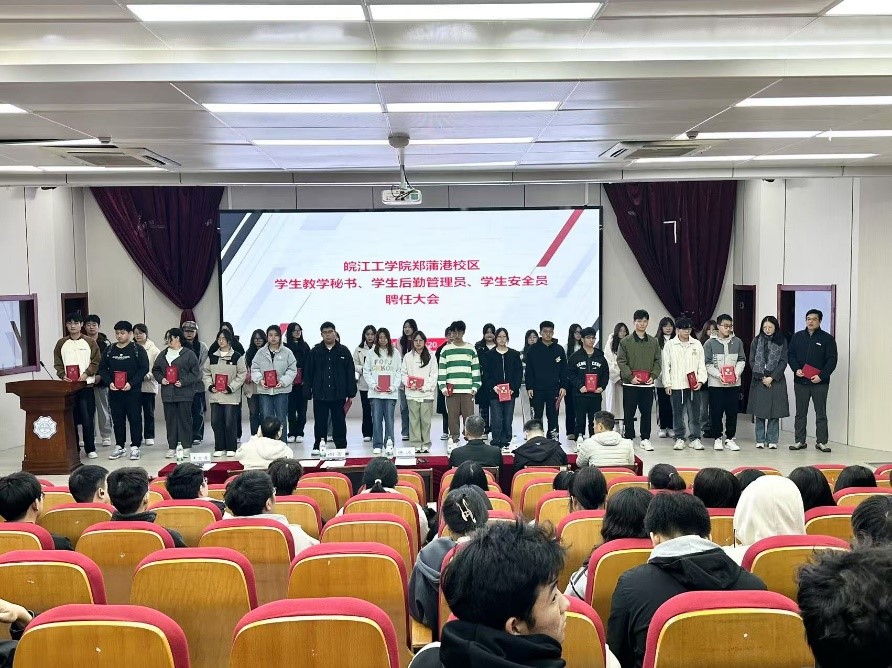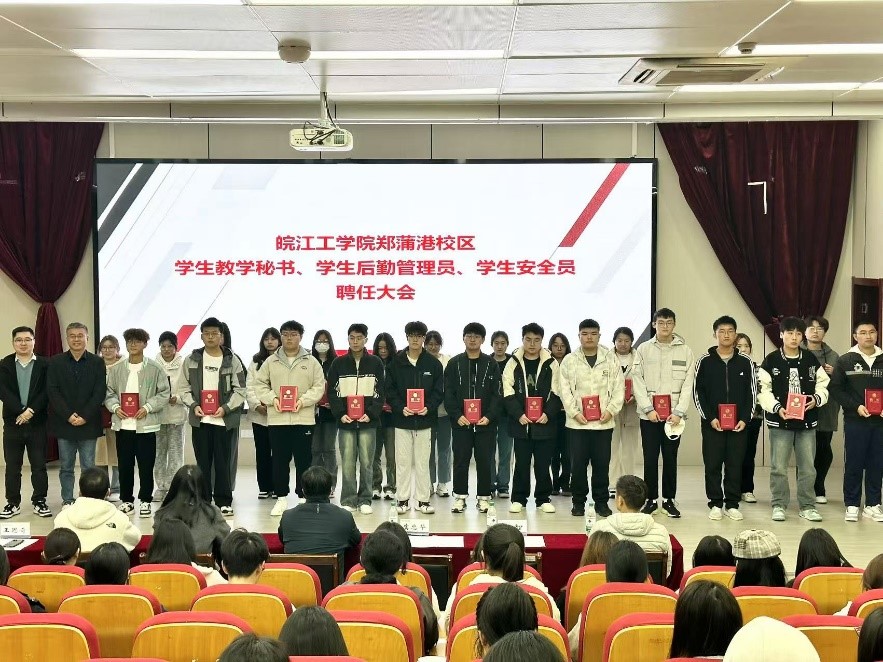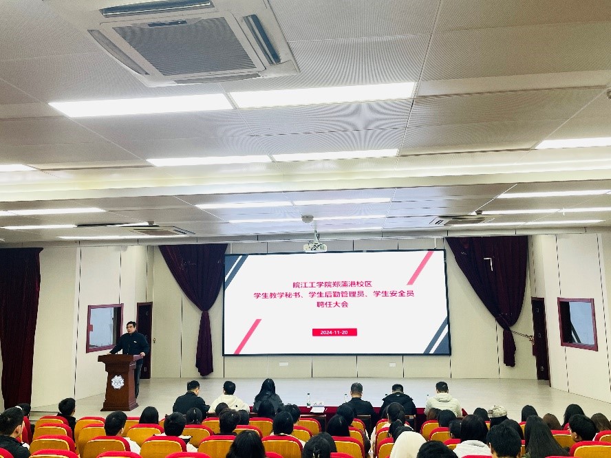 会上,王思奇首先向参会人员介绍了参加会议的领导老师,紧接着宣读了《皖江工学院郑蒲港校区学生教学秘书管理办法(试行)》、《皖江工学院郑蒲港校区学生后勤管理员管理办法(试行)》、《皖江工学院郑蒲港校区学生安全员管理办法(试行)》等相关文件。会中,由校区相关领导向学生“三员”代表颁发聘书。大会最后,由校区管委会副主任陈波讲话。