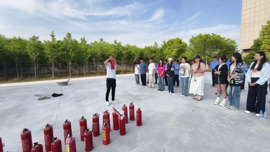疏散环节结束后,各班级学生安全员与灭火行动组一同前往校区消防楼广场开展了灭火实战培训。保卫科吴小君详细讲解了校园常见火灾类型及初期火灾的处置方法,并结合干粉灭火器的使用进行了实战演练。
