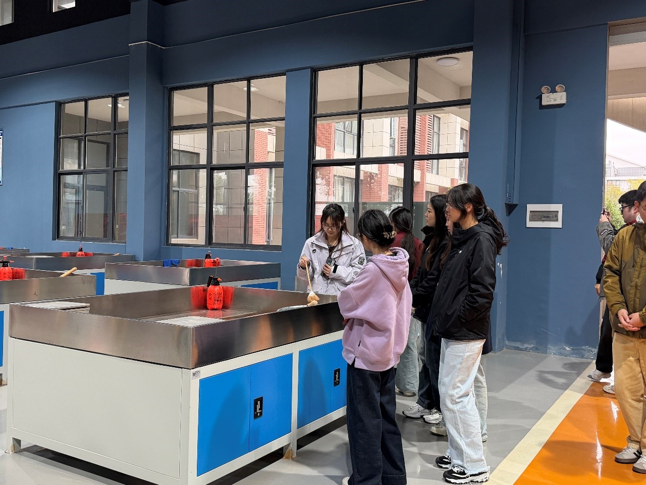 在基础教学实训车间内,激光加工、钳工、焊接、砂型铸造四个特色实训区各展所长。激光加工实训区配备2台金属激光切割机和4台非金属激光切割机,通过项目化教学助力学子掌握精密加工技术;钳工实训区以标准化设备为依托,强化学子手工加工、流程规划与质量检测能力,兼顾安全规范与职业素养培养;焊接实训区融合传统工艺与智能装备,10套手工电弧焊机与1套工业机器人焊接工作站,为现代焊接工艺训练提供有力支撑;砂型铸造实训区则通过基础设备教学,夯实学子传统工艺基础。学子们对各类实训设备和教学模式表现出浓厚兴趣,不时驻足观察、提问交流。
