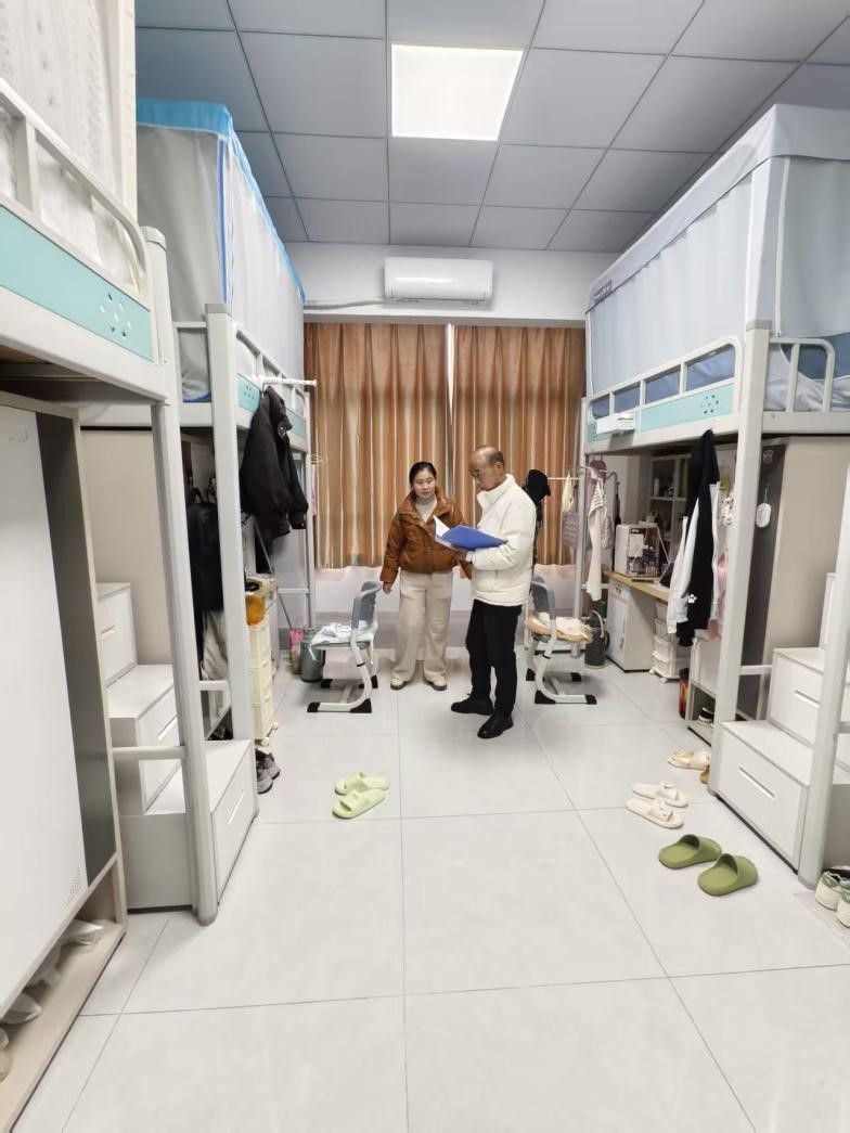 本次检查聚焦师生校园学习生活及消防、交通等重点领域。针对宿舍水电供应、电控及基础设施维修等保障性工作,检查采取“分级检查、实地研判、统一复查”方式,建立了安全隐患整改清单,并明确了整改时限与责任部门。同时,检查组深入学校食堂、超市、图书馆等重点场所,对消防设施、疏散通道及用火用电安全进行了细致排查。