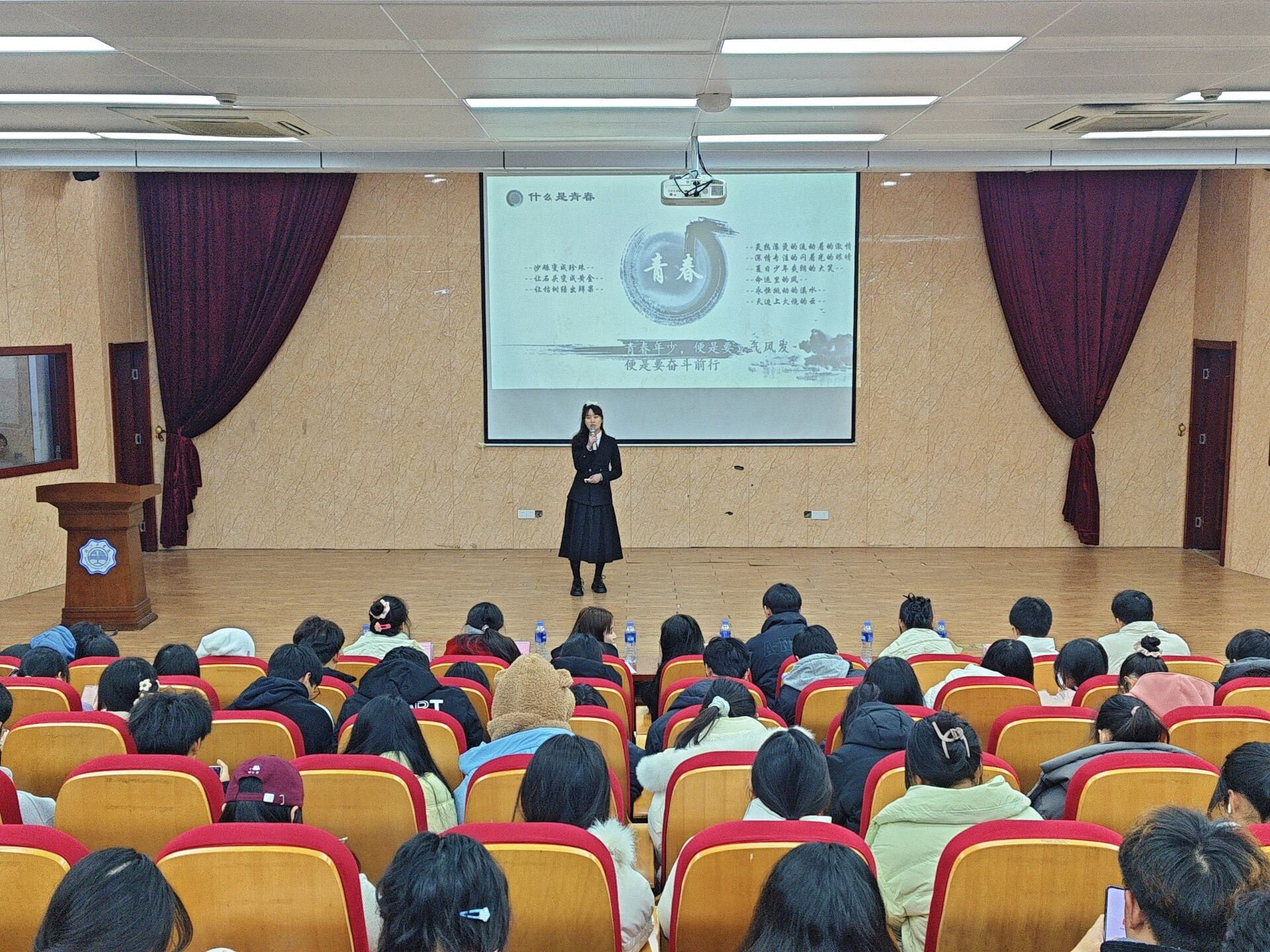 经过初赛的激烈角逐,共有12组演讲选手和12组朗诵选手顺利进入决赛。12月16日晚六点半,演讲朗诵决赛在报告厅正式举办。在比赛中,选手们通过朗诵和演讲,展现了他们对青春的独特理解和热爱。一篇篇激昂的文字,在同学们的口中传颂,仿佛一股股青春的力量,让我们感受到了青春的激情和活力。参赛选手们用真挚的情感、激昂的语调,诠释了对青春的理解,赢得了现场观众的阵阵掌声。在他们的朗诵中,我们感受到了青春的魅力,体会到了青春的力量。比赛最终评选出了一、二、三等奖。其中朗诵比赛一等奖获得者卢志涵,二等奖获得者王新园、杨飞,三等奖获得者韩昕怡、陈倩、欧阳林琳,优秀奖获得者李君洁。演讲比赛一等奖获得者刘星宇,二等奖获得者葛文悦、吴清漪、周思璐、王芳、孙文悦、任紫薇,三等奖获得者俞志红、鲍雨佳、李梦琦、欧玟,优秀奖获得者黄舒妍。