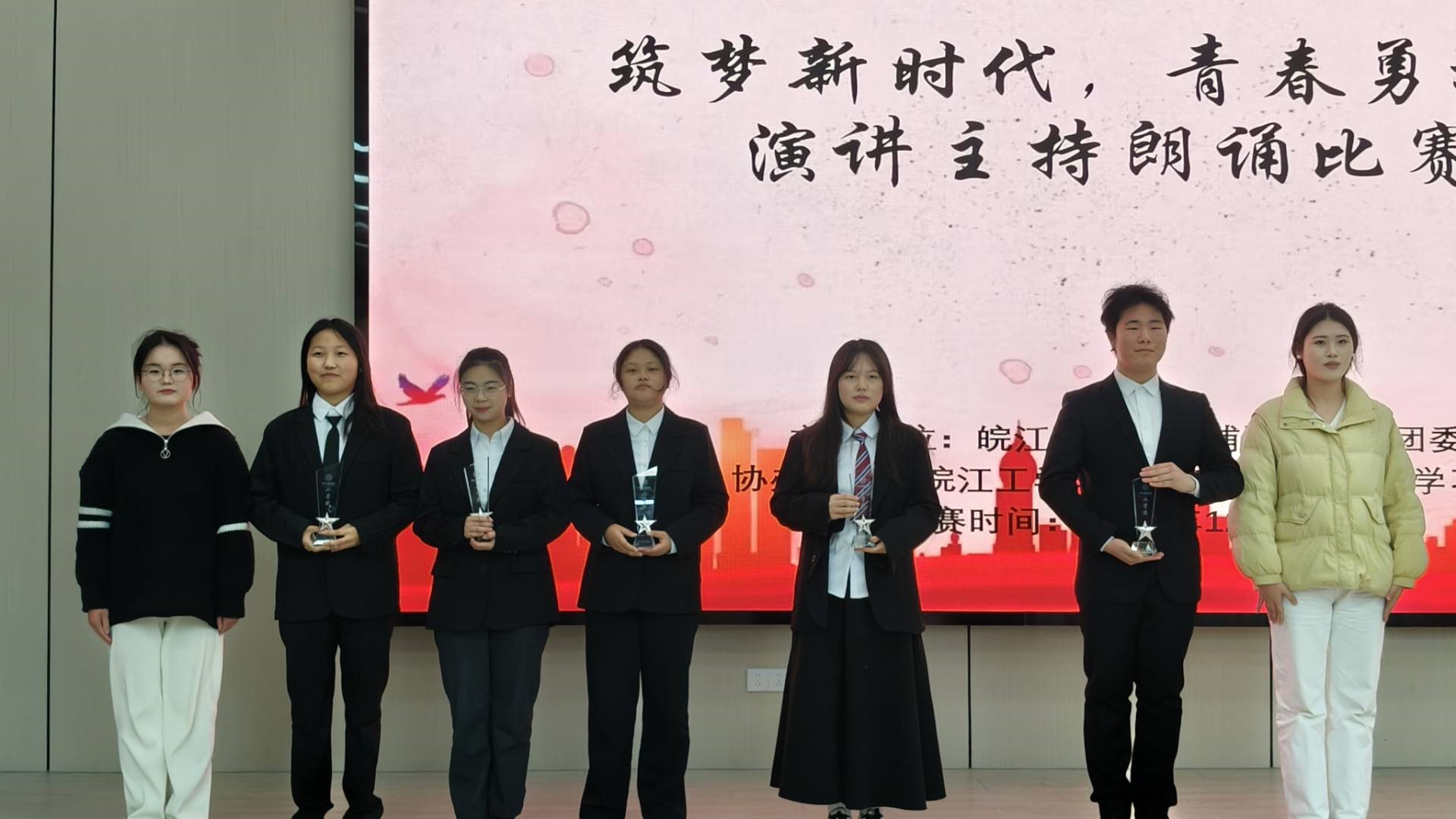 本次比赛不仅为同学们提供了一个展示自我、挑战自我的平台,也进一步增强了校园文化的凝聚力。通过比赛,同学们的语言表达能力、情感传递能力以及团队协作能力都得到了提升。最终,经过激烈的角逐,各个奖项花落各家,比赛在热烈的掌声中圆满落幕。皖江工学院郑蒲港校区将继续秉承“筑梦新时代,青春勇担当”的精神,鼓励同学们在学习和生活中不断追求卓越,勇于担当,共同为实现中华民族伟大复兴的中国梦贡献青春力量。(郑蒲港校区分团委 供稿)